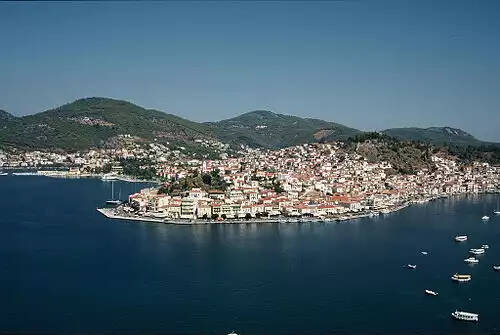 پوروس. [ پ ُ رُ ] ( اِخ ) نام یکی ازجزایر یونان در بحر الجزائر، قرب شمال شرقی موره واقع و مساحت آن 22 هزارگز مربع و دارای 7020 تن سکنه است. و همگی از نژاد آرناؤد هستند و بزبان آرناؤد تکلم کنند، مرکز آن قصبه ای است بهمین اسم که 5000 تن سکنه دارد و دارالصنایع بحری دولت یونان است، رسیف و لنگرگاه قشنگی دارد. اراضی آن سنگلاخ است و ویرانه های معبدی بزرگ مخصوص به نپتون در آنجا دیده میشود. بزعم یونانیان قدیم نپتون رب النوع دریا بود، دموستن مشهور به این پرستشگاه پناه آورد و خود را مسموم ساخت. ( قاموس الاعلام ترکی ).