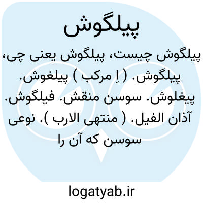 پیلگوش. ( اِ مرکب ) پیلغوش. پیغلوش. سوسن منقش. فیلگوش. آذان الفیل. ( منتهی الارب ). نوعی سوسن که آن را آسمانگون گویند و بر کنار آن نقطه های سیاه بود مانند خالی که بر روی خوبان باشد و رخنه های کوچک دارد. رجوع به پیلغوش شود: