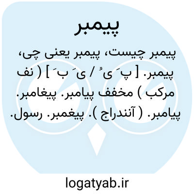 ( صفت اسم ) ۱- رسول پیغام برنده خبر دهنده: پیمبر فرستاد نزدیک شاه گرانمایگانه بر گرفتند راه. ( شا. بخ ۲ ) ۲۳۵٠: ۸-فرستاد. خدا رسول پیغمبر نبی: پیمبر ( خصر ) سوی آب حیوان کشید سر زندگانی بکیوان کشید. ( شا. لغ. ) ۳-( اسم ) پیغمبر اسلام محمد بن عبدا... صلی ا... علیه و آله: گر سوی آل مرد شود مال او چرا زنی آل او نشد ز پیمبر شریعتش ? ( ناصر خسرو ) پیمبر زادگی: فرزند پیمبر بودن: چو کنعان را طبیعت بی هنر بود پیمبر زادگی قدرش نیفزود. ( سعدی )