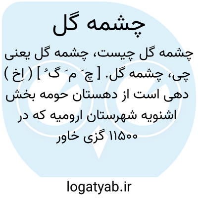 چشمه گل. [ چ َ م َ گ ُ ] ( اِخ ) دهی است از دهستان حومه بخش اشنویه شهرستان ارومیه که در 11500 گزی خاور راه اشنویه به نقده واقع است. جلگه و سردسیر است و 169 تن سکنه دارد. آبش از رودخانه اشنویه، محصولش غلات، حبوبات و توتون، شغل اهالی زراعت و گله داری وراهش مالرو است. ( از فرهنگ جغرافیایی ایران ج 4 ).