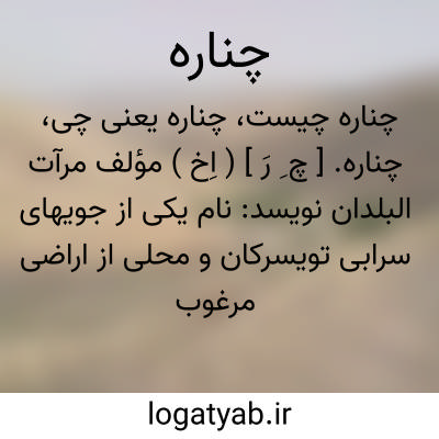 چناره. [ چ ِ رَ / رِ ] ( اِخ ) دهی است از دهستان سرشینو بخش مریوان شهرستان سنندج که در 32 هزارگزی شمال خاوری دژشاهپور و 6 هزارگزی شمال ویله واقع است. کوهستانی و سردسیر است و 200 تن سکنه دارد. آبش از رودخانه کویله. محصولش غلات، لبنیات و حبوبات. شغل اهالی زراعت و گله داری و راهش مالرو و صعب العبور است. ( از فرهنگ جغرافیایی ایران ج 5 ).