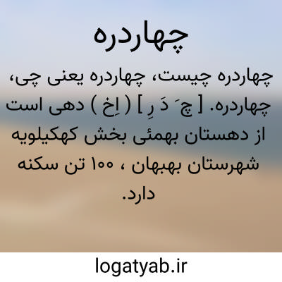 چهاردره. [ چ َ دَ رِ ] ( اِخ ) دهی است از دهستان بهمئی بخش کهکیلویه شهرستان بهبهان، 100 تن سکنه دارد. از رودخانه پوتو آبیاری میشود. محصولش غلات، برنج، پشم ولبنیات و صنایع دستی قالی، قالیچه، جاجیم و پارچه بافی برای چادر است. ( از فرهنگ جغرافیایی ایران ج 6 ).