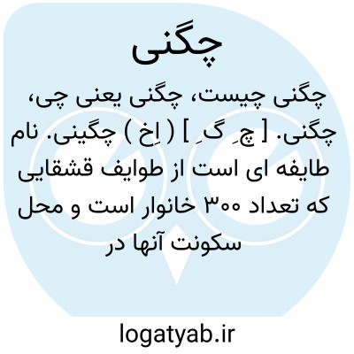 چگنی. [ چ ِ گ ِ ] ( اِخ ) چگینی. نام طایفه ای است از طوایف قشقایی که تعداد 300 خانوار است و محل سکونت آنها در حوالی سمیرم میباشد. ( از جغرافی سیاسی کیهان ص 82 ). رجوع به چگینی شود.