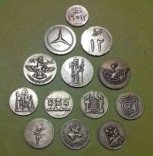 ( اسم ) پولک استخوانی یا فلزی که در قمار و جشنها و در بعضی موسسات بجای پول بکار رود.