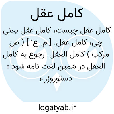 کامل عقل. [ م ِ ع َ ] ( ص مرکب ) کامل العقل. رجوع به کامل العقل در همین لغت نامه شود: دستوروزراء کامل عقل و منشور حکماء صاحب تجربه را منسوخ گردانید. ( حبیب السیر چ طهران جزء سوم از ج 3 ص 125 ).چون به پادشاهی نشست، هیچ از آداب و آیین ملک نمیشناخت و کامل عقل نبود. ( ص 111 فارسنامه ابن البلخی ).
