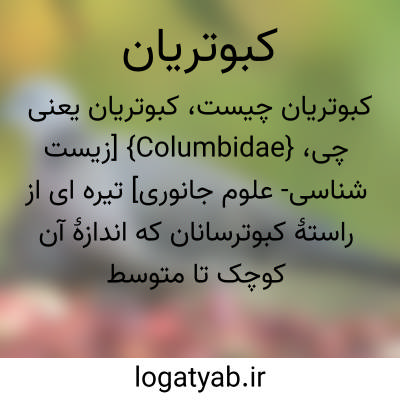 {Columbidae} [زیست شناسی- علوم جانوری] تیره ای از راستۀ کبوترسانان که اندازۀ آن کوچک تا متوسط است با سر کوچک و پرهای زینتی نرم و بسیار متراکم