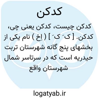 کدکن. [ ک َ ک َ ] ( اِخ ) نام یکی از بخشهای پنج گانه شهرستان تربت حیدریه است که در سرتاسر شمال شهرستان واقع شده. این بخش جلگه ای و سردسیر است و بادهای شدید همواره از طرف خواف می وزد. بخش کدکن از دو دهستان به نام بالارخ و پائین رخ تشکیل شده که جمعاً 131 پاره دیه است و جمعیت آن 39203 تن می باشد. ( از فرهنگ جغرافیایی ایران ج 9 ).