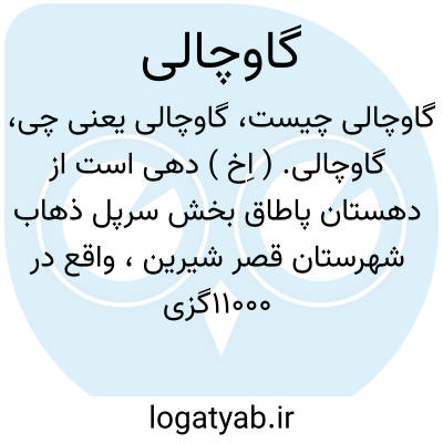 گاوچالی. ( اِخ ) دهی است از دهستان پاطاق بخش سرپل ذهاب شهرستان قصر شیرین، واقع در 11000گزی جنوب خاوری سرپل ذهاب کنار شوسه ٔقصر شیرین به کرمانشاهان. دامنه، هوای معتدل، دارای 170 تن سکنه. آب آن از سرآب رزآب. محصول آنجا غلات، لبنیات، توتون، صیفی، شغل اهالی زراعت، گله داری و تهیه زغال هیزم است. ( از فرهنگ جغرافیایی ایران ج 5 ).