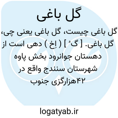 گل باغی. [ گ ُ ] ( اِخ ) دهی است از دهستان جوانرود بخش پاوه شهرستان سنندج واقع در 42هزارگزی جنوب خاوری پاوه و هفت هزارگزی باختری قلعه جوانرود. هوای آن سرد و دارای 102 تن سکنه است. آب آن از چشمه و محصول آن غلات، لبنیات و میوه و شغل اهالی زراعت و گله داری و راه مالرو دارد. ( از فرهنگ جغرافیایی ایران ج 5 ).