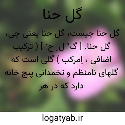 گل حنا. [ گ ُ ل ِ ح َ ] ( ترکیب اضافی، اِمرکب ) گلی است که گلهای نامنظم و تخمدانی پنج خانه دارد که در هر یک دانه های بسیار است و چون برسد بواسطه شکافهایی ناگهان باز شده دانه های خود را پراکنده میکند. ( گیاه شناسی گل گلاب ص 217 ). اسم فارسی فاغیه است. ( تحفه حکیم مؤمن ).