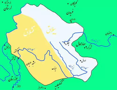 ایل بختیاری، از دو شاخه هفت لنگ و چهارلنگ تشکیل شده است. شاخه هفت لنگ، به چهار باب تقسیم شده و گندلی از طوایف زیرمجموعهٔ دورکی محسوب می شود. طایفهٔ گندلی، خود، شامل ۱۱تیره است که هر یک از این تیره ها، خود شامل زیر شاخه های فراوانی بنام اولاد بوده، که این اولادها نیز، تعداد زیادی خانوار را شامل می شوند.