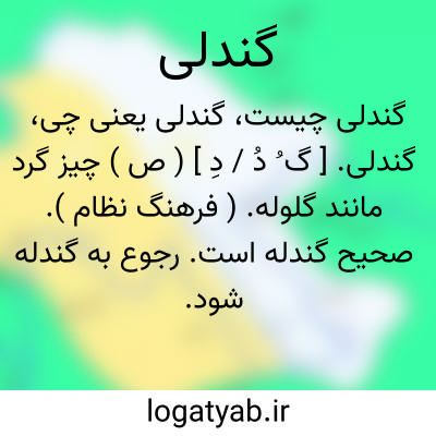 گندلی. [ گ ُ دُ / دِ ] ( ص ) چیز گرد مانند گلوله. ( فرهنگ نظام ). صحیح گندله است. رجوع به گندله شود.