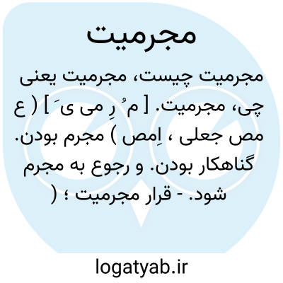 مجرمیت. [ م ُ رِ می ی َ ] ( ع مص جعلی، اِمص ) مجرم بودن. گناهکار بودن. و رجوع به مجرم شود.