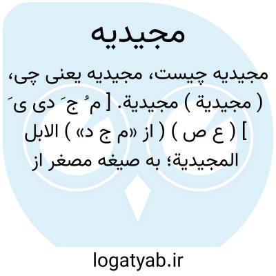 ( مجیدیة ) مجیدیة. [ م ُ ج َ دی ی َ ] ( ع ص ) ( از «م ج د» ) الابل المجیدیة؛ به صیغه مصغر از شتران یمن است و گویند منسوب است به محلی که نام آن مُجَید است. ( از اقرب الموارد ). شتران مجیدیه؛ جنسی از شتران مجیدیه یمنی. ( یادداشت به خط مرحوم دهخدا ).