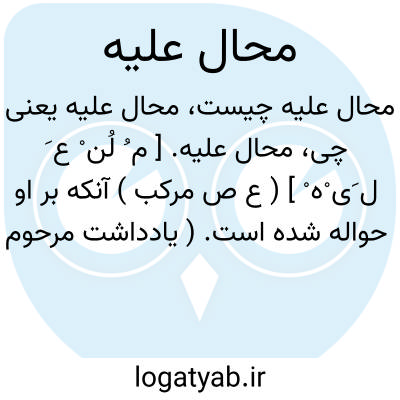 محال علیه. [ م ُ لُن ْ ع َ ل َی ْه ْ ] ( ع ص مرکب ) آنکه بر او حواله شده است. ( یادداشت مرحوم دهخدا ). شخص ثالث در قبال محیل که مدیون است و محتال که طلبکار است. ( قانون مدنی ماده 724 ).
