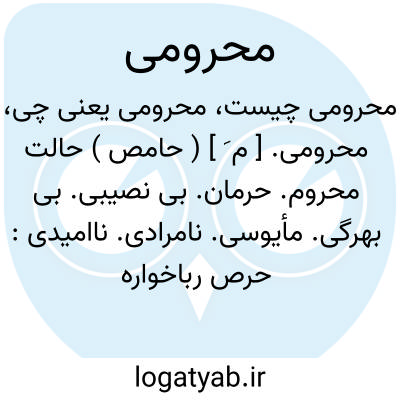 محرومی. [ م َ ] ( حامص ) حالت محروم. حرمان. بی نصیبی. بی بهرگی. مأیوسی. نامرادی. ناامیدی: