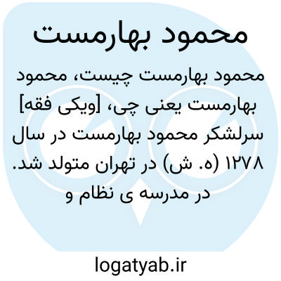 [ویکی فقه] سرلشکر محمود بهارمست در سال ۱۲۷۸ (ه. ش) در تهران متولد شد. در مدرسه ی نظام و دانشکده ی افسری و دانشگاه جنگ درس خواند و بالاخره به مقام سر لشکری ارتقاء یافت. وی در سال ۱۳۵۶ در حالی که از دو چشم نابینا شده بود، در تهران درگذشت.