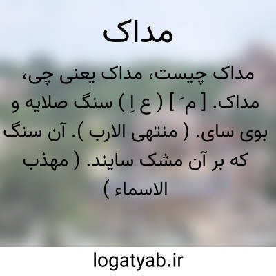مداک. [ م َ / م ُ ] ( ع اِ ) مُداکَة. مِداکَة. ( ناظم الاطباء ). رجوع به مداکة شود.