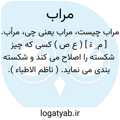 مرأب. [ م ِ ءَ ] ( ع ص ) کسی که چیز شکسته را اصلاح می کند و شکسته بندی می نماید. ( ناظم الاطباء ).