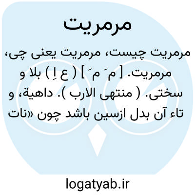 مرمریت. [ م َ م َ ] ( ع اِ ) بلا و سختی. ( منتهی الارب ). داهیة، و تاء آن بدل ازسین باشد چون «نات » بجای ناس. ( از اقرب الموارد ).