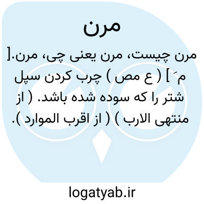 مرن. [ م َ ] ( ع اِ ) چرم نرم. ( منتهی الارب ) ( از اقرب الموارد ). || پوستین. ( منتهی الارب ). فراء. ( از اقرب الموارد ). || جامه. ( منتهی الارب ). کسوة. || نوعی از جامه. ( از اقرب الموارد ). || ( مص ) گریختن از دشمن. ( از منتهی الارب ) ( از اقرب الموارد ). || نرم کردن پوست را. ( از اقرب الموارد ). || ( ص ) یوم مرن؛ روزی که دارای خلعت و لباس و کسوه باشد. ( از اقرب الموارد ). || یوم مرن؛ روزی که در آن فرار از دشمن باشد. ( از اقرب الموارد ). || ( اِ ) دهش. ( منتهی الارب ). عطاء. ( اقرب الموارد ). || کرانه و جانب.( منتهی الارب ) ( اقرب الموارد ). || نام گیاهی است. ( منتهی الارب ). ج، اَمران. ( اقرب الموارد ).