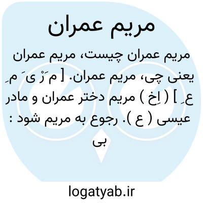 مریم عمران. [ م َرْ ی َ م ِ ع ِ ] ( اِخ ) مریم دختر عمران و مادر عیسی ( ع ). رجوع به مریم شود: