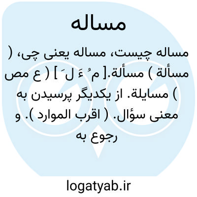 چنان که مسأله شرع پیش دانشمند.سعدی ( گلستان ).عین صواب است و مسأله بی جواب. ( گلستان سعدی ). الاغلوطة؛ مسأله دشوار. ( دهار ). || مطلب. موضوع. قضیه. مبحث: نامه ها فرستی [ حصیری ] با قاصدان مسرع تا آن مسأله راحل کرده آید. ( تاریخ بیهقی ص 211 ).
