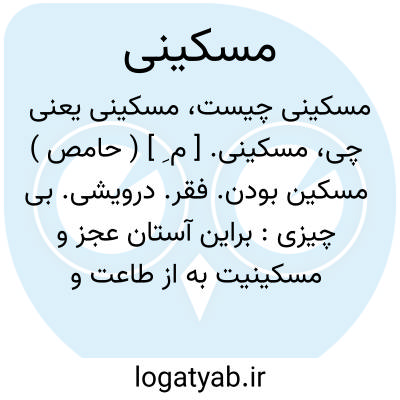 مسکینی. [ م ِ ] ( حامص ) مسکین بودن. فقر. درویشی. بی چیزی: