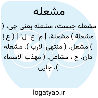 ( اسم ) مشعل: هزاران مشعله بر شد همه مسجد منور شد بهشت وحوض کوثر شد پر از رضوانپرازحورا. ( دیوان کبیر ) جمع: مشاعل. یا مشعل. خاوری.خورشید. یامشعل. روز. خورشید. یا مشعل. صبح. خورشید. یا مشعل. گیتی فروز. ۱ - خورشید. ۲ - حضرت رسول ص.