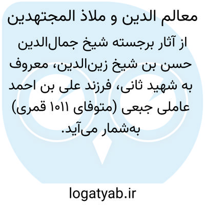 [ویکی نور] معالم الدین و ملاذ المجتهدین (قسم الأصول)، تألیف شیخ جمال الدین حسن بن شیخ زین الدین شهید ثانی بن علی بن احمد عاملی جبعی (متوفای 1011 قمری) است.