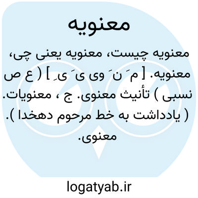 معنویه. [ م َ ن َ وی ی َ ی ِ ] ( ع ص نسبی ) تأنیث معنوی. ج، معنویات. ( یادداشت به خط مرحوم دهخدا ). معنوی. ( ناظم الاطباء ). رجوع به معنوی شود.