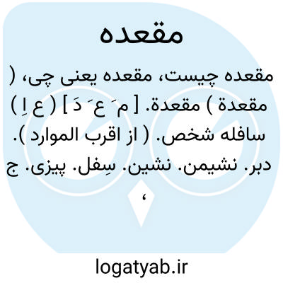 ( مقعدة ) مقعدة. [ م َ ع َ دَ ] ( ع اِ ) سافله شخص. ( از اقرب الموارد ). دبر. نشیمن. نشین. سِفل. پیزی. ج، مقاعد. ( یادداشت به خط مرحوم دهخدا ). || نشستنگاه. ( منتهی الارب ) ( ناظم الاطباء ). مکان نشستن.مَقْعَد. ( از اقرب الموارد ). || قدحی که در آن تغوط کنند. ( از اقرب الموارد ). || ادبخانه. بیت التخلیه: عن ابی عبداﷲ ( ع )، السواک علی المقعدة یورث البخر. ( یادداشت به خط مرحوم دهخدا ).