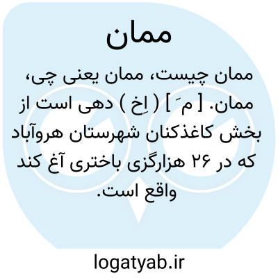 ممان. [ م َ ] ( اِخ ) دهی است از بخش کاغذکنان شهرستان هروآباد که در 26 هزارگزی باختری آغ کند واقع است. دارای 1286 تن سکنه است. ( از فرهنگ جغرافیایی ایران ج 4 ).
