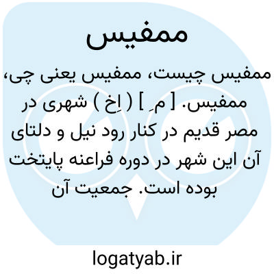 ممفیس. [ م ِ ] ( اِخ ) شهری در مصر قدیم در کنار رود نیل و دلتای آن این شهر در دوره فراعنه پایتخت بوده است. جمعیت آن راهفتصدهزار تن نوشته اند. خرابه های باشکوه این شهر نزدیک عین الشمس در 35 هزارگزی جنوب قاهره قرار دارد.
