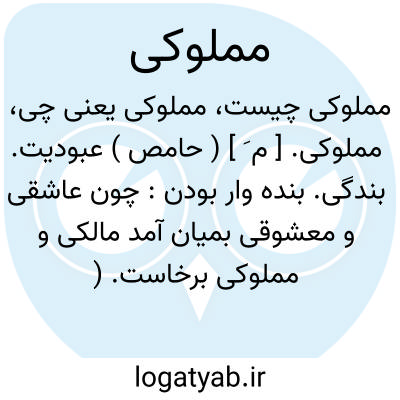 مملوکی. [ م َ ] ( حامص ) عبودیت. بندگی. بنده وار بودن: چون عاشقی و معشوقی بمیان آمد مالکی و مملوکی برخاست. ( گلستان ).