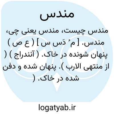 مندس. [ م ُ دَس س ] ( ع ص ) پنهان شونده در خاک. ( آنندراج ) ( از منتهی الارب ). پنهان شده و دفن شده در خاک. ( ناظم الاطباء ) ( از اقرب الموارد ). رجوع به اندساس شود.