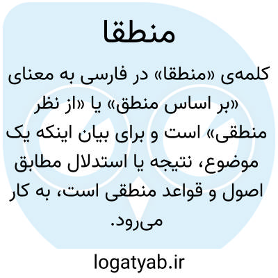 کلمه‌ی «منطقاً» در فارسی به معنای «بر اساس منطق» یا «از نظر منطقی» است و برای بیان اینکه یک موضوع، نتیجه یا استدلال مطابق اصول و قواعد منطقی است، به کار می‌رود. این واژه از ریشه «منطق» گرفته شده و حالت قیدی دارد که نشان می‌دهد عملی یا گفته‌ای بر پایه استدلال و تفکر منطقی صورت گرفته است. منطقاً معمولاً در استدلال‌های فلسفی، علمی و ریاضی برای تأکید بر اعتبار یا امکان‌پذیری یک موضوع استفاده می‌شود. این قید نشان می‌دهد که نتیجه‌ای که بیان می‌شود با اصول صحیح تفکر و روابط علت و معلولی همخوانی دارد. در مکالمات روزمره نیز می‌توان از منطقاً برای اشاره به چیزی که عقلانی و معقول به نظر می‌رسد استفاده کرد. از نظر معنایی، با واژه‌هایی مانند عقلاً، به‌طور منطقی، عقلانی و بر اساس استدلال هم‌معنی است. استفاده درست از این واژه نشان‌دهنده توجه به تفکر منطقی و بررسی اصولی موضوعات است. در ادبیات فلسفی و علمی، منطقاً اغلب برای بررسی امکان‌سنجی، تحلیل نتایج و سنجش صحت استدلال‌ها کاربرد دارد.