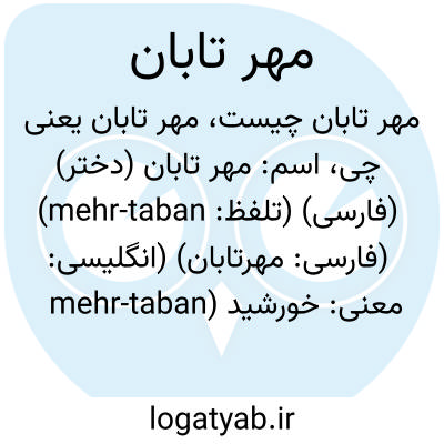 اسم: مهر تابان (دختر) (فارسی) (تلفظ: mehr-taban) (فارسی: مهرتابان) (انگلیسی: mehr-taban)