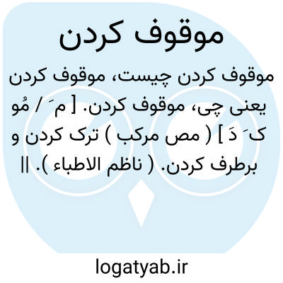 موقوف کردن. [ م َ / مُو ک َ دَ ] ( مص مرکب ) ترک کردن و برطرف کردن. ( ناظم الاطباء ). || ایستانیدن. واایستانیدن. به ایستادن داشتن. متوقف ساختن. ( از یادداشت مؤلف ). || بازایستانیدن. بازداشتن. بازداشت کردن. توقیف کردن. تحت نظر گرفتن وزندانی ساختن. محبوس کردن. ( از یادداشت مؤلف ): سرای بوسهل فروگرفتند و از آن قوم و پیوستگان او که جمله به بلخ بودند موقوف کردند. ( تاریخ بیهقی چ ادیب ص 330 ). پسرش را با پسر قاید به دیوان آوردندو موقوف کردند. ( تاریخ بیهقی چ ادیب ص 324 ). برادر ما را به قلعت کوهتیز موقوف کردند. ( تاریخ بیهقی چ ادیب ص 76 ). او را به نشابور موقوف کردند. ( ترجمه تاریخ یمینی ص 400 ). || ضبط کردن، چنانکه مال ودارایی را. مصادره کردن. تصرف کردن املاک و اموال کسی را. ( از یادداشت مؤلف ): کسان رفتند و سرایش فروکوفتند و همه نعمتهایش بستدند و موقوف کردند. ( تاریخ بیهقی چ ادیب ص 317 ). || بسته و متعلق کردن به. وابسته و مشروط ساختن به: امتحان ما را به بازگشت فلان از سفر موقوف کرده است. ( از یادداشت لغت نامه ). || در تداول مردم قزوین، بازایستادن از گریه و زاری. ترک زاریدن و گریستن کردن.