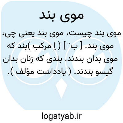 موی بند. [ ب َ ] ( اِ مرکب )بند که موی بدان بندند. بندی که زنان بدان گیسو بندند. ( یادداشت مؤلف ). عقاص. ( ملخص اللغات ) ( السامی فی الاسامی ) ( دهار ). موی باف. سُفّة. ( منتهی الارب ). امروزه بندی از نوار معمول است که زنان موی و گیسوی خود را بدان می بندند و آن را روبان می گویند:
