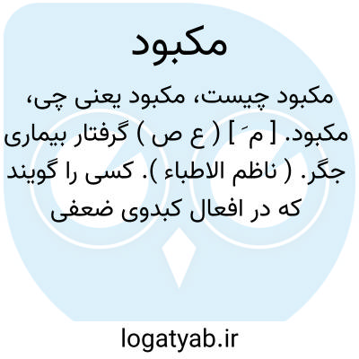 مکبود. [ م َ ] ( ع ص ) گرفتار بیماری جگر. ( ناظم الاطباء ). کسی را گویند که در افعال کبدوی ضعفی باشد بی آنکه ورم یا درد داشته باشد. ( از بحرالجواهر ) ( از منتهی الارب ) ( از اقرب الموارد ). کسی را گویند که اندر جگر او آفتی باشد. ( ذخیره خوارزمشاهی ): خداوند جگر ضعیف را مکبود گویند و ضعیفی و درد جگر را کباد گویند. جالینوس می گوید مکبود آن را گویند که افعال جگر او باطل باشد بی آنکه دروی آماسی و ریشی و دبیله ای بود. ( ذخیره خوارزمشاهی ).