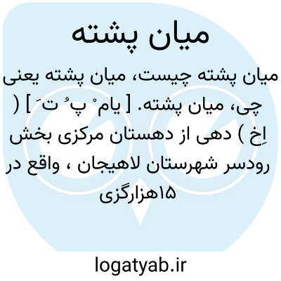 میان پشته. [ یام ْ پ ُ ت َ ] ( اِخ ) دهی از دهستان مرکزی بخش رودسر شهرستان لاهیجان، واقع در 15هزارگزی باختر رودسر، با 300 تن سکنه. آب آن از نهر پل رود و راه آن ماشین رو است. ماشین برنج کوبی دارد و مزرعه مازندران بیجار در آمار جزء این ده بشمار است. ( از فرهنگ جغرافیائی ایران ج 2 ).