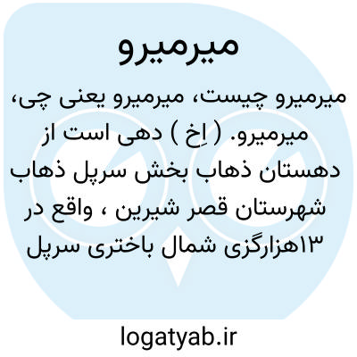 میرمیرو. ( اِخ ) دهی است از دهستان ذهاب بخش سرپل ذهاب شهرستان قصر شیرین، واقع در 13هزارگزی شمال باختری سرپل ذهاب با 100 تن سکنه. آب آن از نهر ولاش و راه آن مالرو است. ( از فرهنگ جغرافیائی ایران ج 5 ).
