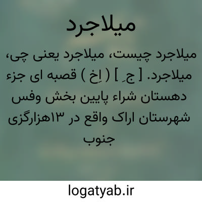میلاجرد. [ ج ِ ] ( اِخ ) دهی است از دهستان طرق رود بخش نطنز شهرستان کاشان، واقع در 16هزارگزی جنوب خاوری نطنز با 600 تن سکنه. آب آن از قنات و راه آن ماشین رو است. ( از فرهنگ جغرافیائی ایران ج 3 ).
