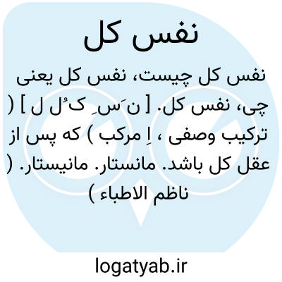 از نفس کل آب و گلش صفوت در اجزا داشته.خاقانی.رجوع به اقانیم ثلاثه و رجوع به فلوطین شود. || کنایه از عرش. ( غیاث اللغات ) ( آنندراج ). || ( اِخ ) بعضی گویند نفس کل حضرت محمد است که عقل کل هم گویند. ( فرهنگ مصطلحات عرفا ص 401 ).