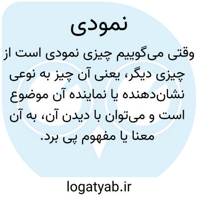 «نمودی» یعنی چیزی که نمایان می‌شود یا نشان داده می‌شود. وقتی می‌گوییم چیزی نمودی است از چیزی دیگر، یعنی آن چیز به نوعی نشان‌دهنده یا نماینده آن موضوع است و می‌توان با دیدن آن، به آن معنا یا مفهوم پی برد. این واژه معمولاً برای نشان دادن یک ارتباط بین ظاهر و معنا به کار می‌رود. یعنی چیزی که نمودی است، فقط یک چیز فیزیکی نیست، بلکه نمایانگر یک ایده، ارزش یا احساس هم هست. به طور خلاصه، این کلمه یعنی «نمایان شدن یک چیز به عنوان نشانه یا نمونه‌ای از چیزی دیگر». وقتی چیزی نمودی است، با دیدنش می‌توانیم آن مفهوم یا ویژگی را که پشت آن نهفته است، بفهمیم.