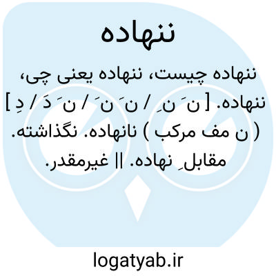ننهاده. [ ن َ ن ِ / ن َ ن َ / ن َ دَ / دِ ] ( ن مف مرکب ) نانهاده. نگذاشته. مقابل ِ نهاده. || غیرمقدر. نامقدر. تعیین ناشده. تقدیرناشده: