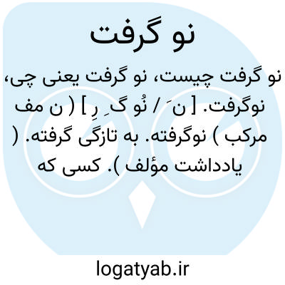 نوگرفت. [ ن َ / نُو گ ِ رِ ] ( ن مف مرکب ) نوگرفته. به تازگی گرفته. ( یادداشت مؤلف ). کسی که تازه گرفتار و مبتلا شده. ( فرهنگ فارسی معین ). تازه شکار شده. تازه به دام افتاده: