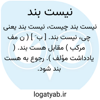 نیست بند. [ ب َ ] ( ن مف مرکب ) مقابل هست بند. ( یادداشت مؤلف ). رجوع به هست بند شود.