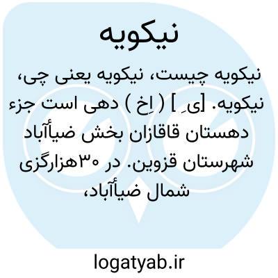 نیکویه. [ی ِ ] ( اِخ ) دهی است جزء دهستان قاقازان بخش ضیأآباد شهرستان قزوین. در 30هزارگزی شمال ضیأآباد، 8هزارگزی راه عمومی و در منطقه کوهستانی سردسیری واقع و 1220 تن سکنه دارد. آبش از قنات و رودخانه، محصولش غلات، گاودانه، عدس، انگور، زردآلو، بادام، لبنیات، و شغل مردم زراعت و گله داری و صنایع دستی قالی، جاجیم و جوراب بافی است. ( از فرهنگ جغرافیائی ایران ج 1 ).